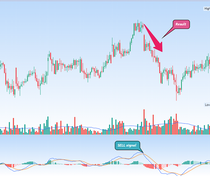 This crossover indicates a shift in momentum, suggesting a potential downtrend. Traders interpret this signal as a potential opportunity to sell or exit long positions in anticipation of further price declines.